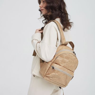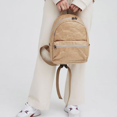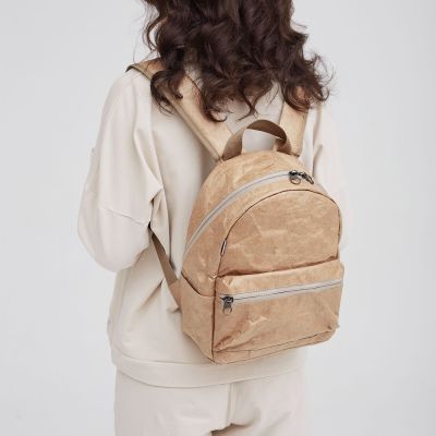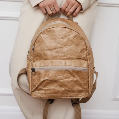 Рюкзак Latifa Kraft выполнен из необычного Крафт материала Tyvek (Тайвек), который устойчив к дождю и снегу, его можно даже мыть в стиральной машине, в холодной воде. Материал ультра легкий и прочный.