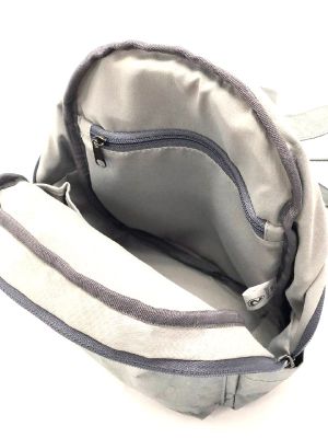 Детали: одно вместительное отделение с застежкой на молнию, один внешний карман с застежкой на молнию, два кармашка по бокам, подклад из хлопкосодержащей смесовой ткани, два маленьких внутренних кармана для мелочей, один внутренний карман с застежкой на молнию, лямки выполнены из основного материала, дублируются хлопковой стропой в тон и регулируются по длине.