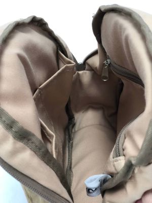 Детали: одно вместительное отделение с застежкой на молнию, один внешний карман с застежкой на молнию, два кармашка по бокам, подклад из хлопкосодержащей смесовой ткани, два маленьких внутренних кармана для мелочей, один внутренний карман с застежкой на молнию, лямки выполнены из основного материала, дублируются хлопковой стропой в тон и регулируются по длине.