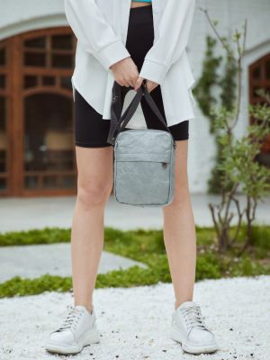 Детали: одно вместительное отделение с застежкой на молнию, один внешний карман с застежкой на молнию, один внешний карман с застежкой на кнопку, подклад из хлопкосодержащей смесовой ткани, регулируемый ремень из стропы.