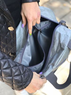 Детали: одно вместительное отделение с застежкой на молнию, один внешний карман с застежкой на молнию, один внутренний карман с застежкой на молнию, ручки выполнены из крепкой синтетической стропы, съемный плечевой регулируемый ремень. Ручки и крепление плечевого ремня усилены и прошиты по периметру сумки. Подклад выполнен из ткани Оксфорд.