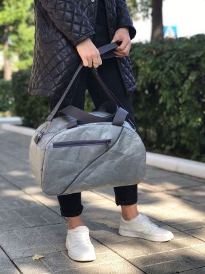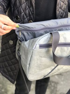 Сумка Hunty Gray выполнена из необычного Крафт материала Tyvek (Тайвек), который устойчив к дождю и снегу, его можно даже мыть в стиральной машине, в холодной воде. Материал ультра легкий и прочный.