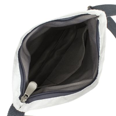 Детали: одно вместительное отделение с застежкой на молнию, один внешний карман с застежкой на молнию, подклад из хлопкосодержащей смесовой ткани, два маленьких внутренних кармана для мелочей, регулируемый ремень из хлопковой стропы.